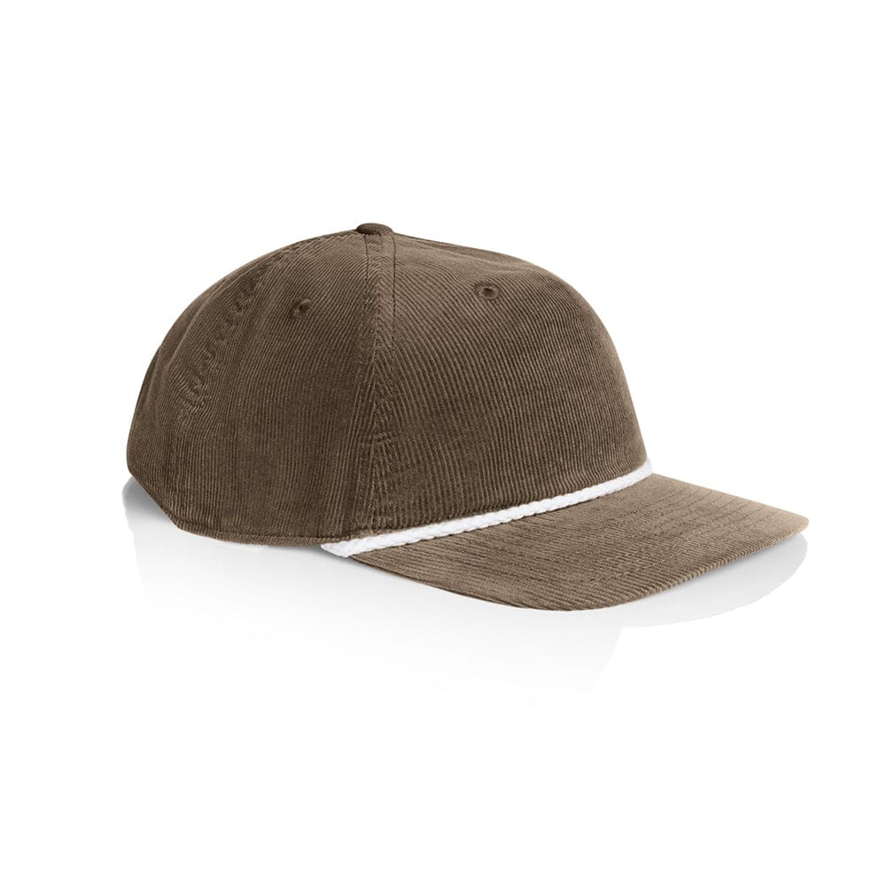 AS Colour Class Cord Rope Cap: A mid-weight, unstructured five-panel cap crafted from 100% cotton with 16-Wale Partridge Cord. Enhanced with a unique matte nylon rope detail at the crown for a modern appeal. With a flat peak, plastic snapback, and tonal under-peak lining. One size fits all, complemented by a tear-out AS Colour label for personalized wear.